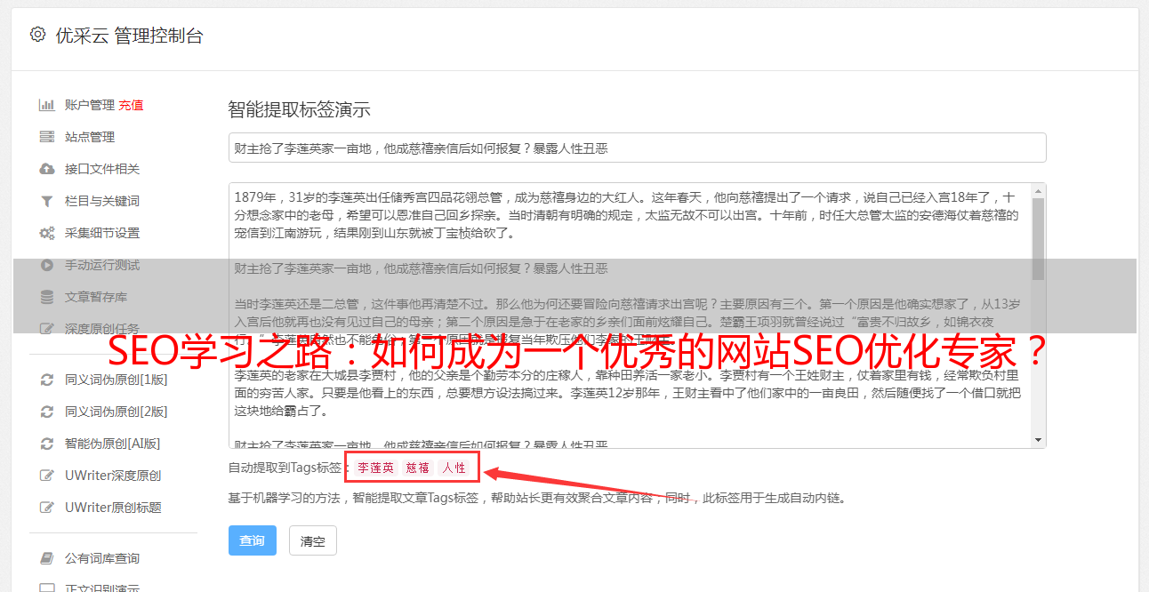 流量分析工具,推荐使用分析工具百度分析工具和百度统计分析工具。版权属于作者。根据CC0协议,本网站有权转发商业转载。请联系作者获取授权。非商业转载请注明出处。*敏*感*词*:【操作小东西】编辑SEO学习笔记(1):如何打造网站?标题:【SEO学习之路】大中资讯网站SEO技巧总结如何成为优秀的网站 SEO优化专家?SEO SEO是search engine optimization的缩写,中文是搜索引擎优化。PR值的全称是PageRank(页面排名),是百度识别页面排名和重要性的方法,也被百度使用百度衡量网站是质量的重要标准之一。SEM搜索引擎营销,SEM经常提到TKD标题的缩写,关键词,网站TKD标题描述(爬虫,机器人,蜘蛛),关键词 ,描述(爬虫)人、机器人、蜘蛛)必须通过付费和广告推广到搜索引擎。百度权重简称白帽SEO。