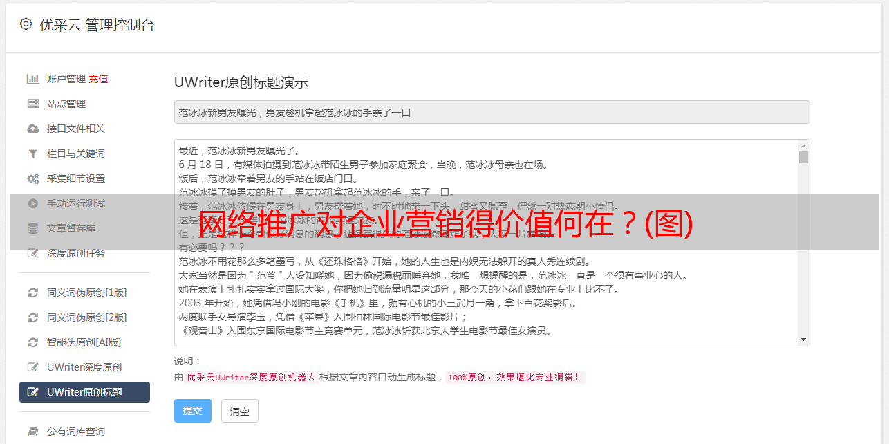 优采云 发布时间: 2021-06-19 18:16网络推广对企业营销得价值何在?(图)
