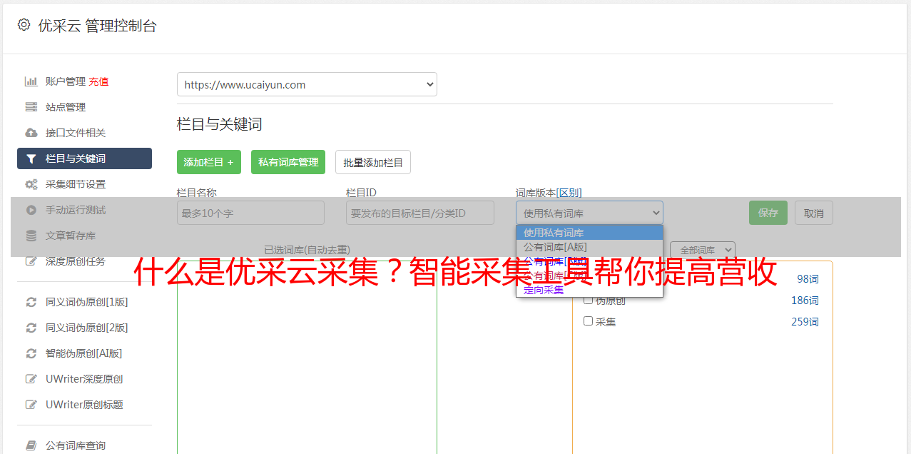 优采云采集是自媒体材料搜、文章原创的运营工具,一键发布,有效提升新媒体运营效率,降低企业成本。