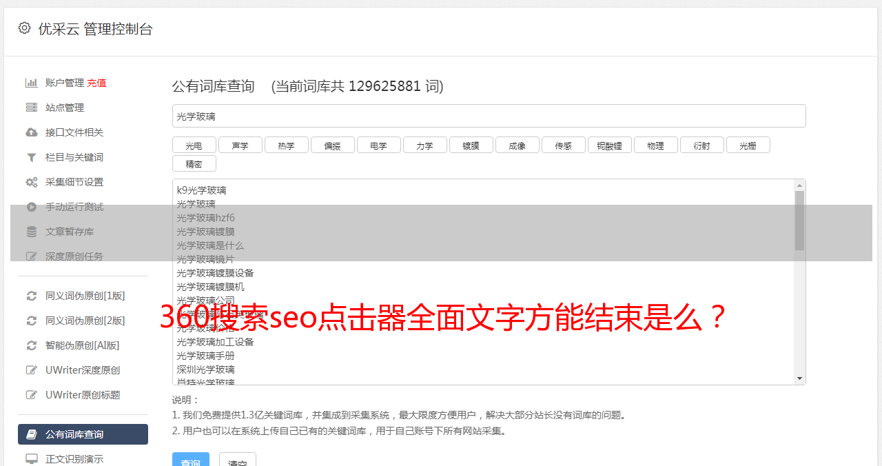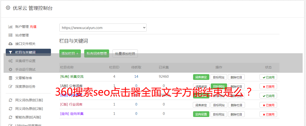 大家要明白,360搜索seo点击器是通过不断与搜索引擎玩游戏而产生的。基于网络环境健康发展的原则,百度算法不断迭代优化。但是每个系统都收录好与坏的区别。不管系统怎么做,都是一个辅助功能。只有掌握网站ranking的基本原理,整合处理一系列的烦恼,不断升级,才有机会获得超棒的成绩。最后感谢大佬们多年来对我们平台的信任!