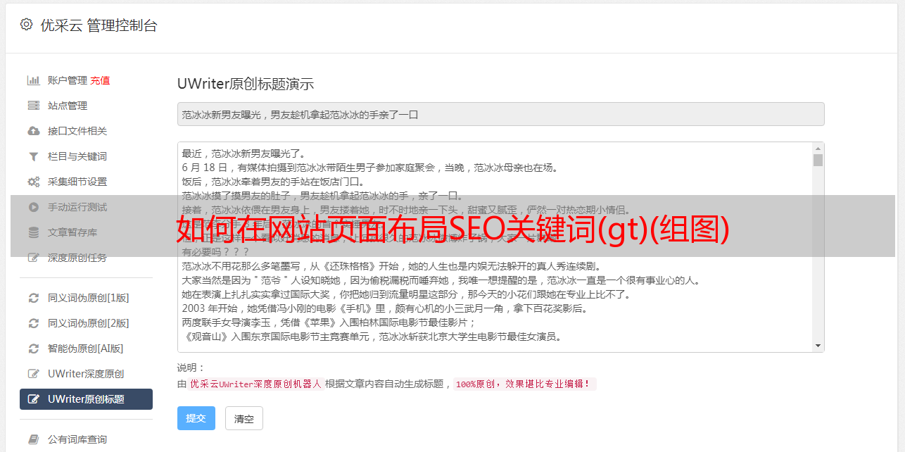 优采云 发布时间: 2021-06-19 20:32如何在网站页面布局SEO关键词(gt)(组图)