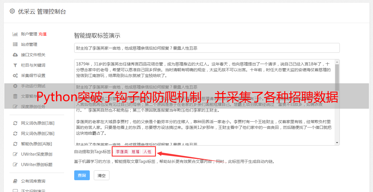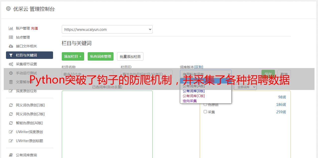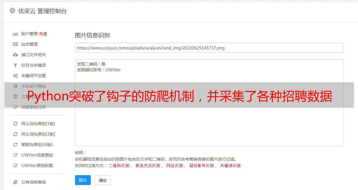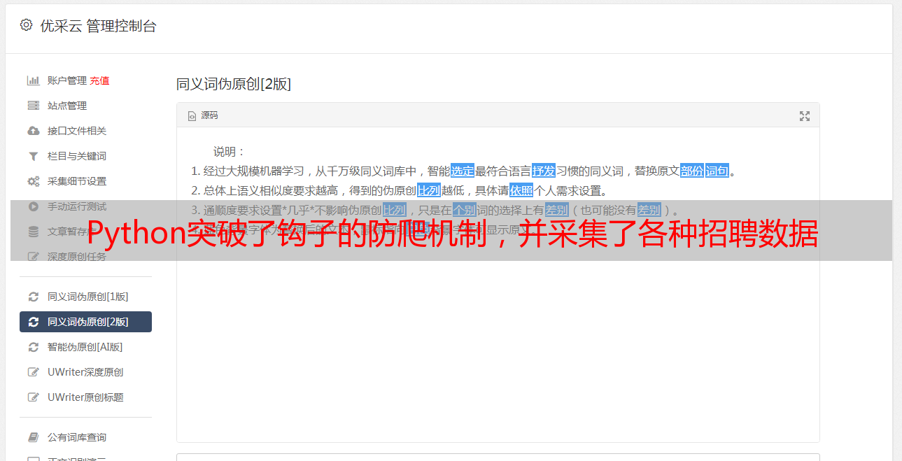 Python突破了钩子的防爬机制,并采集了各种招聘数据