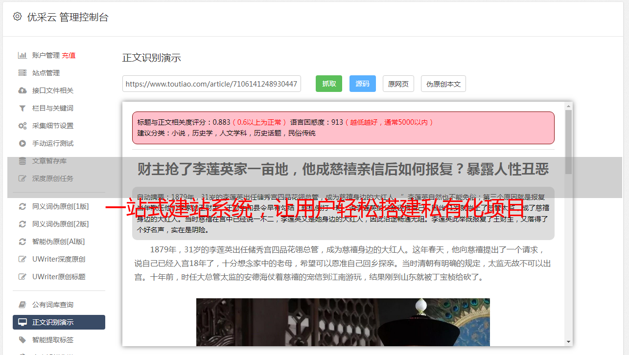 内容发布管理、模块安装/卸载、插件管理及完善的后台管理权限+开发者助手等丰富功能