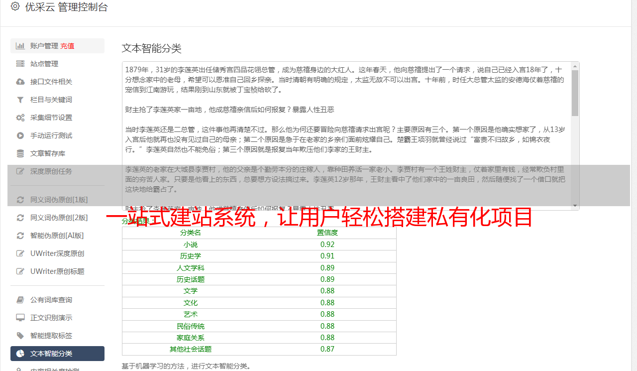 7、支持手动添加管理标签,支持页面内容标签自动聚合;