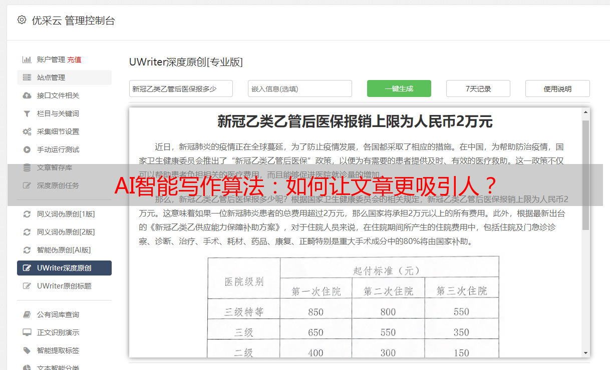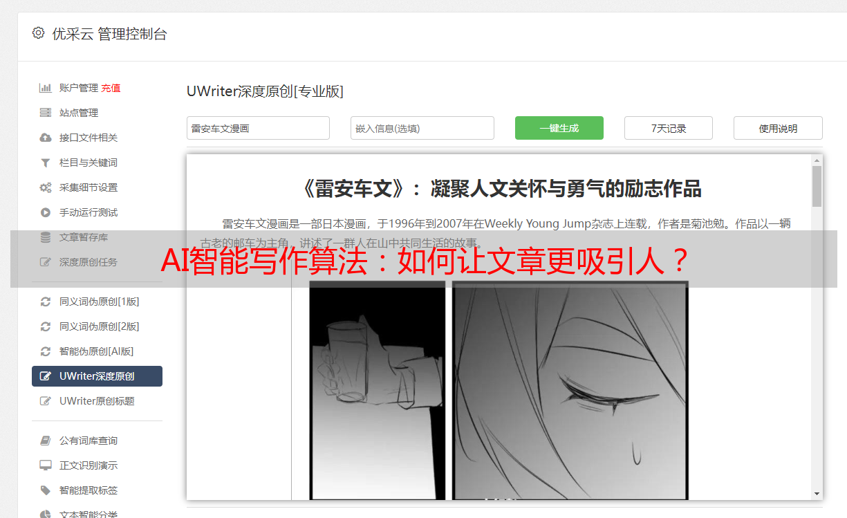 优采云 发布时间: 2023-12-25 21:58AI智能写作算法是新时代的重要技术,因其高效精准及创造力日益受到写作者欢迎。在此与大家分享我个人对该技术的使用心得: