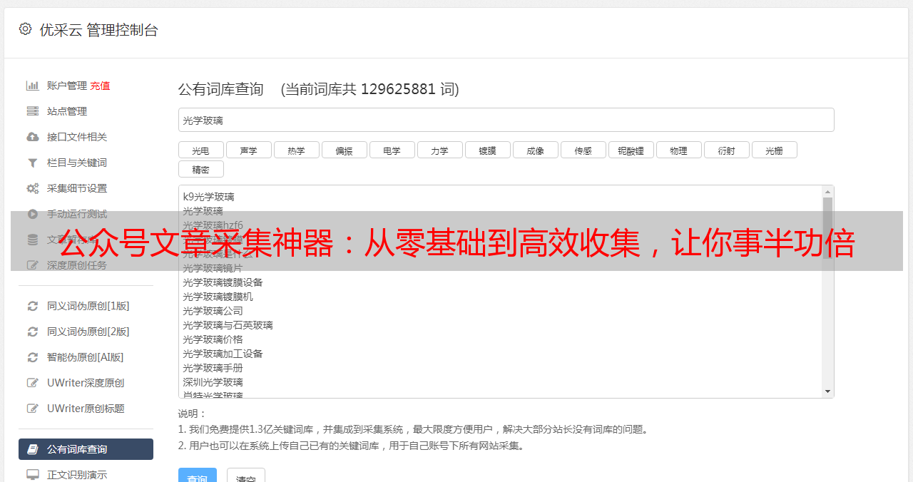 优采云 发布时间: 2023-12-25 21:59大家好!作为一位专业的微信公众平台管理者,很高兴与大家分享一些高效收集特定公众号文章的实用方法,助您在工作、学习中更加得心应手。