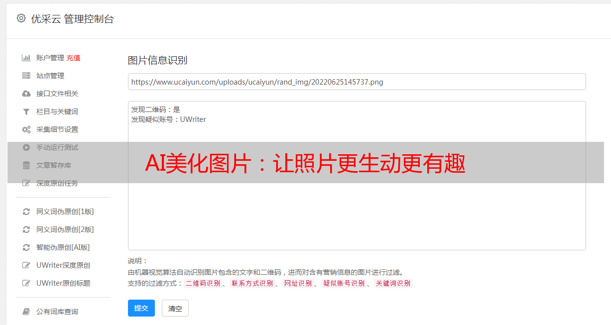 优采云 发布时间: 2023-12-25 22:40随着社交媒体的普及,我们日益重视拍照并分享精彩瞬间。然而,有时照片略显不足,需要稍作润色以达到理想效果。此时,人工智能(AI)美化图片及文案制作无疑是拯救之选