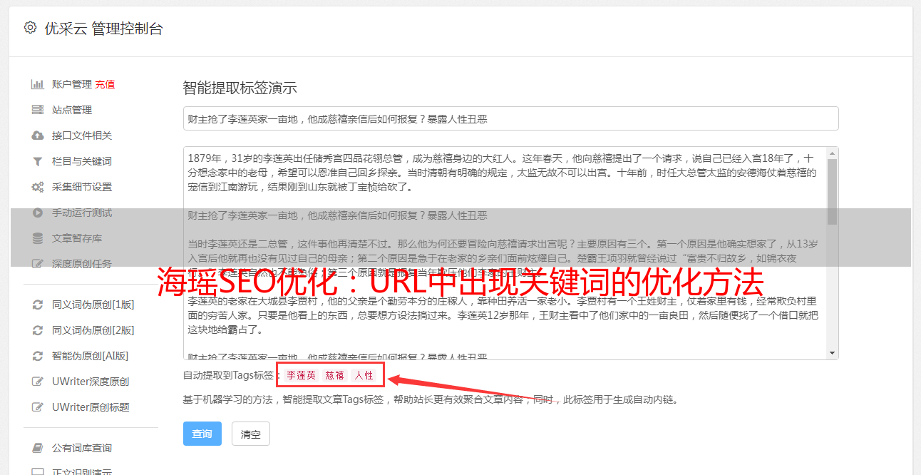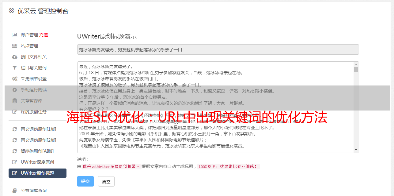 常规内容是指网站的文章内容。不要小看这部分,它直接影响网站的整体权重。这相当于一个人的血液,渗透到人体的每一个部位。一个人一天不吃不饿,一天不流血,就会变成丧尸。好的网站离不开好的内容。好的内容当然是原创。从别人网站上采集的内容来看,搜索引擎收录会很少。就算收录完了,权重也会很高。低的。写过原创内容的站长都知道原创一个高质量的文章需要很长时间。大多数网站管理员在几天后放弃,转而使用伪原创 工具。使用伪原创工具确实可以快速创建内容,但笔者个人认为内容可以是伪原创,但不能用伪原创工具创建。因为伪原创工具制作的内容不流畅,扭曲了文章的意思,久而久之,网站就会变成垃圾站。在SEO行业,强调原创内容的性别是最重要的环节。让我们分享一些文章写作的技巧。