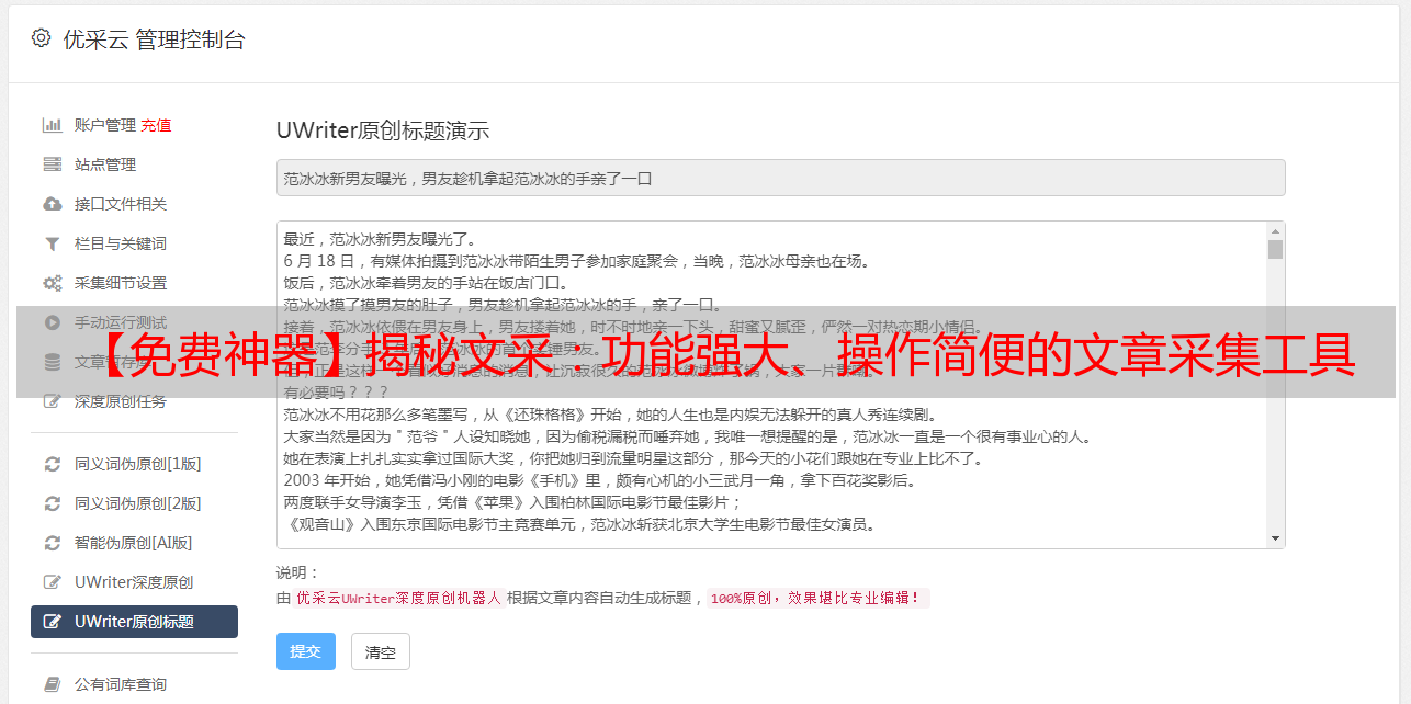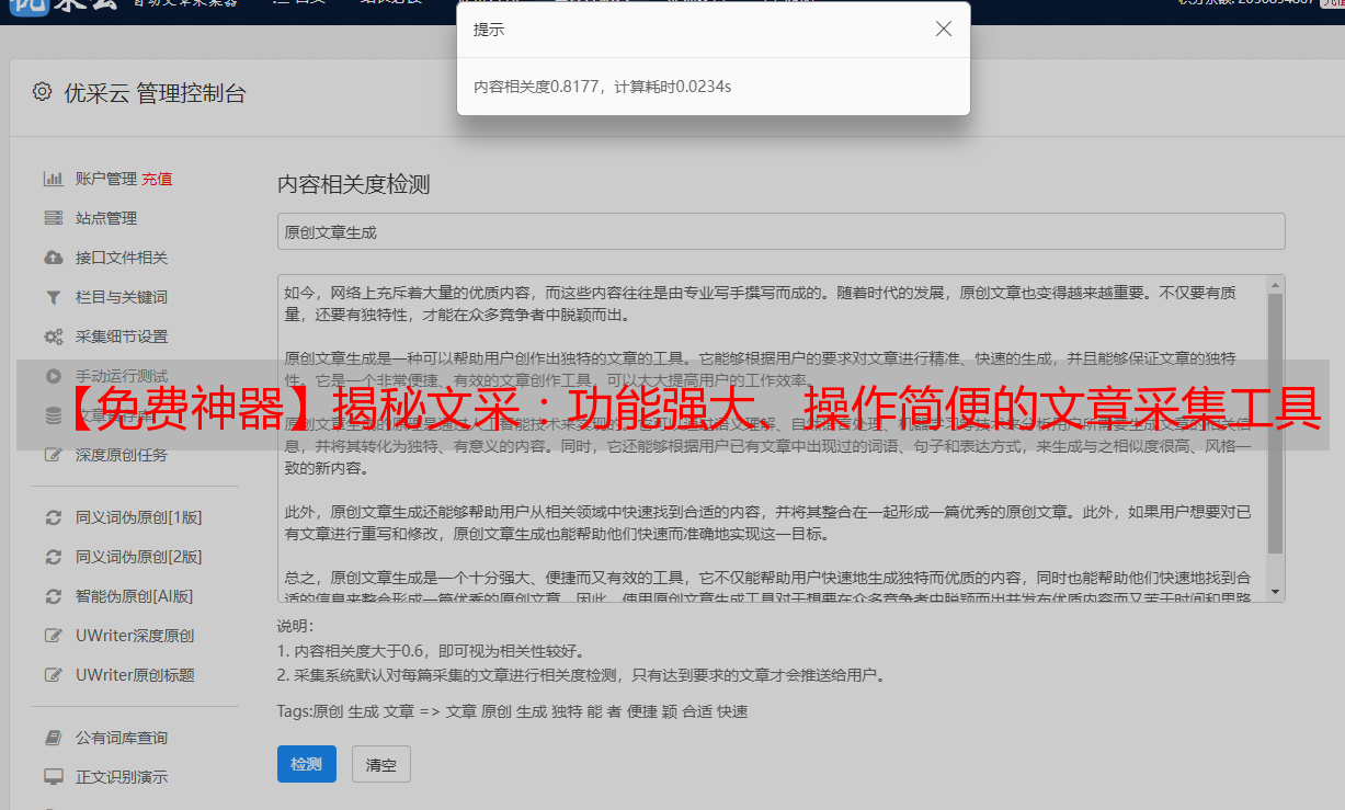 【免费神器】揭秘文采:功能强大、操作简便的文章采集工具
