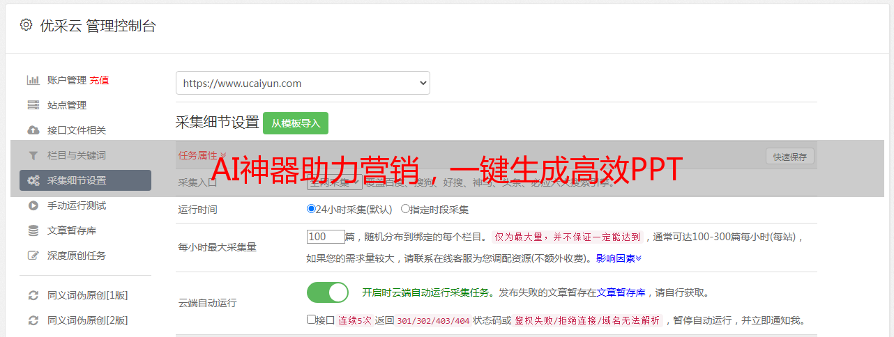 优采云 发布时间: 2023-12-26 16:48敬爱的各位读者朋友们,鄙人名叫张华,在担任市场营销经理的职位上有幸接触并亲自试用了一种神奇的AI技术——“根据文章生成PPT”,这为我繁忙的工作带来了轻松和高效的体验。今天在此,愿意与诸位共襄盛举,分享这段不可思议的经历。