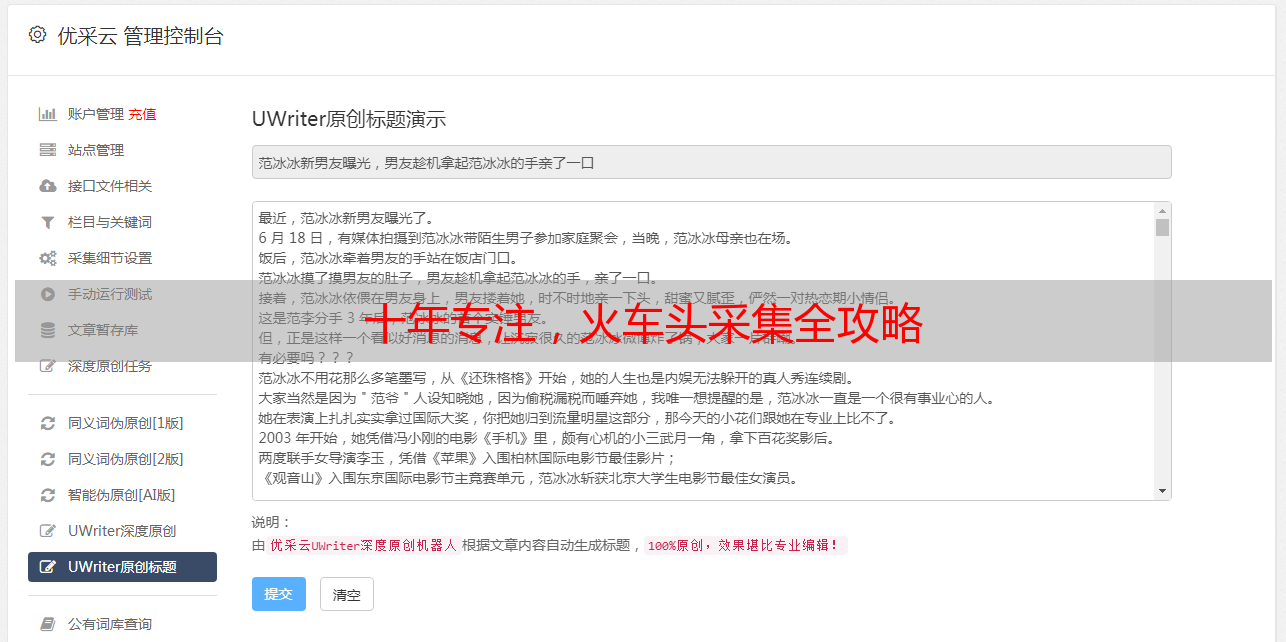 优采云 发布时间: 2023-12-27 00:57身为一位专注于火车头采集的行家,我已在此领域耕耘了十余载。希望在这儿与您共同探讨一些有关采集文章的心得与窍门,期待能给您带来些许帮助。
