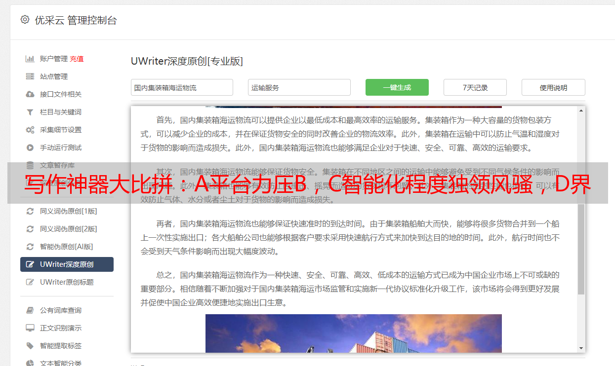 我们赞赏平台的智能力量,它主要依托于深度学习和自然语言处理技术。这使我们得以清晰了解用户的写作心愿,并能据此提供适当的建议与优化方案。以C平台为例,在智能化水平上独具优势,它可以依据用户的写作特征以及目标人群的需求,智能调整文章的语调、词汇及结构。