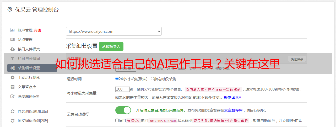 优采云 发布时间: 2023-12-27 09:42AI自动写作已成为当前科技成果的突出表现,许多人都开始对此产生兴趣及应用。那么大家或许会好奇,究竟要如何找到适合自己的AI写作工具呢?作为有多年行业经验的AI技术精英,我在此向大家作详细解释。