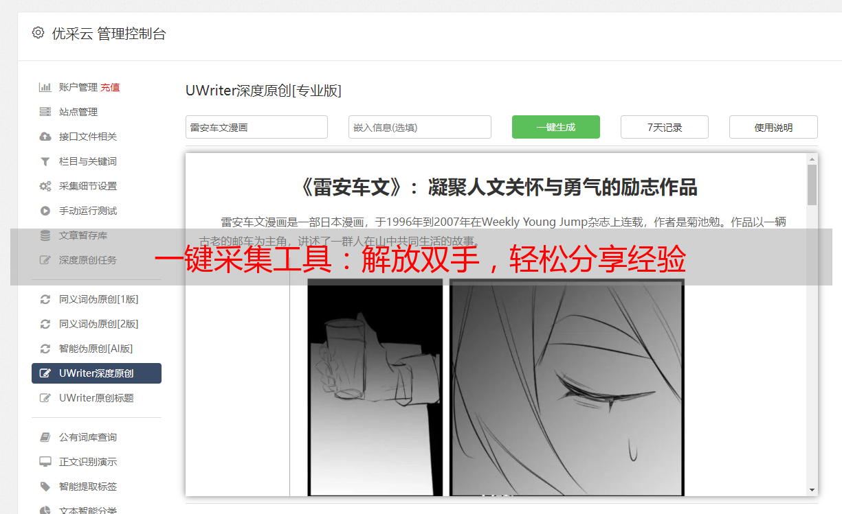 优采云 发布时间: 2023-12-28 08:50在此资讯丰富的当今社会中,每日所获的信息量令人惊叹,且需加以分析处理。身为专业领域的佼佼者,非常重视知识与经验的交流分享。然而,如何有效获取并编辑这一珍贵资源往往是个难题。幸好,如今有一种特别的软件—一键采集工具,有助于我们准确而快捷地反馈与传递经验教训。