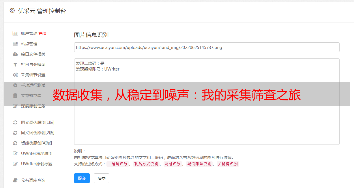 优采云 发布时间: 2023-12-28 21:28收集环节对我们的工作至关重要,它直接影响着整套数据处理流程的质量与精度。但在实际操作中,常遇到数据来源不稳、噪音干扰等诸多挑战。面对这种情况,我着手进行了一段采集筛查之旅。