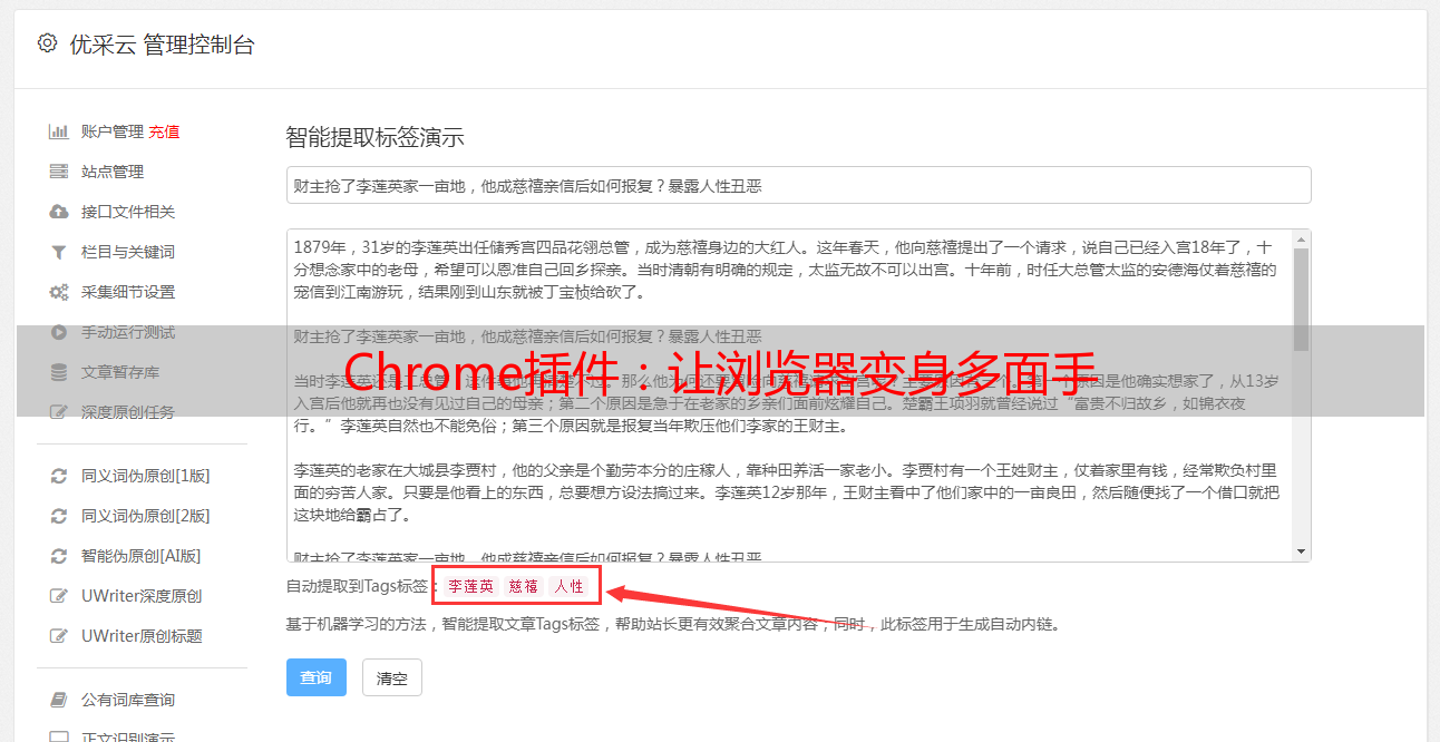 优采云 发布时间: 2023-12-29 02:49一、插件带来的便捷功能