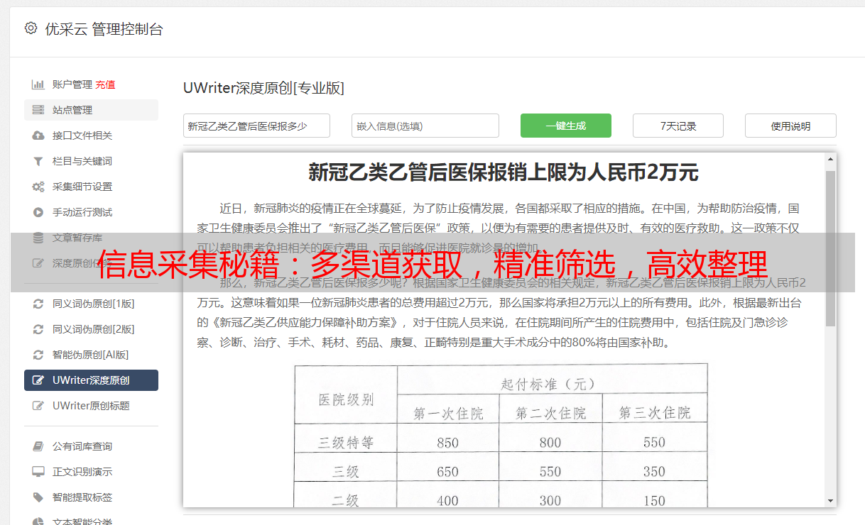 优采云 发布时间: 2023-12-29 03:55信息采集系统作为现代化科技工具之一,已在多个行业广泛使用。经过多年实践后,身为信息采集员的我总结出部分经验心得,愿在此与您共享。
