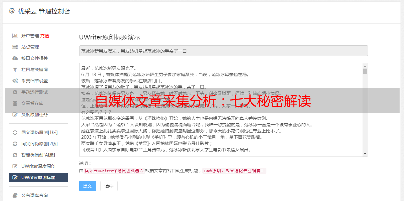 优采云 发布时间: 2023-12-29 15:39逐渐火热起来的自媒体文章采集分析已经成为众多人关注的焦点,各位都期待借助此平台传播个人见解和专业知识。然而面对无处不在的信息,如何从大量的文章中筛选出有价值内容已成为摆在我们面前的一大难题。在此文中,我会从七个重要方面为你解读自媒体文章采集分析的秘密所在。