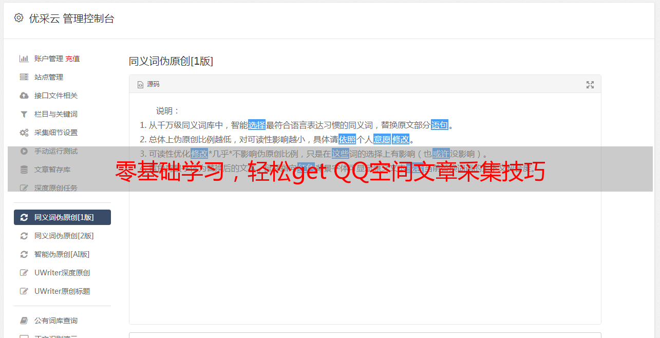 优采云 发布时间: 2023-12-29 19:30在这个充满社交网络气息的时代中,我们习惯于用各类平台捕捉生活点滴,并乐于与他人分享。尤其是在我国社交领域颇有影响力的QQ空间,其庞大的用户群体让许多人对采集和整理QQ空间文章的过程产生了浓厚兴趣及无尽挑战。
