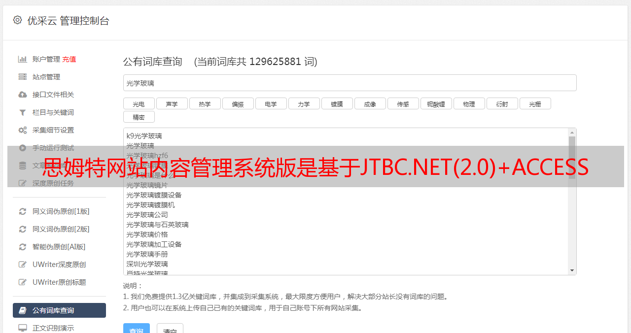 优采云 发布时间: 2021-06-20 20:17思姆特网站内容管理系统版是基于JTBC.NET(2.0)+ACCESS