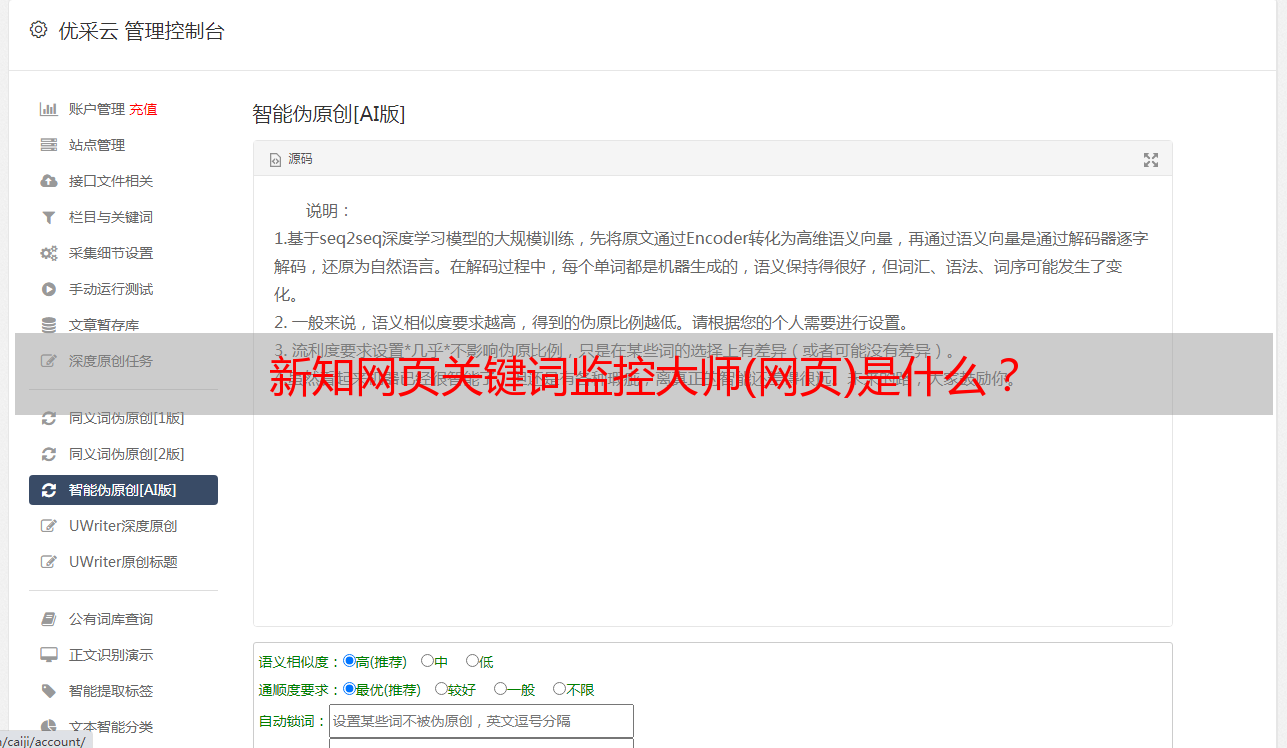 优采云 发布时间: 2021-06-20 20:35新知网页关键词监控大师(网页)是什么?