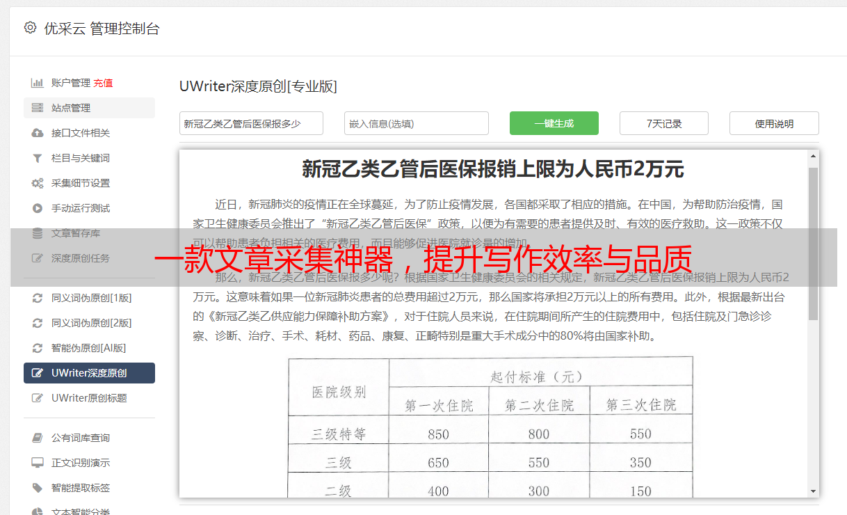 优采云 发布时间: 2023-12-31 07:57身为一位热爱写作的行家,我深深明白找到一款优质好用的文章采集工具对提高创作效率与品质的关键作用,经过一番深入研究与比较,我惊喜地发现了一个集高效实用于一身的利器——文章采集工具在线。接下来,我将以诚恳的态度为您阐述这款工具的独特优势与特色之处。