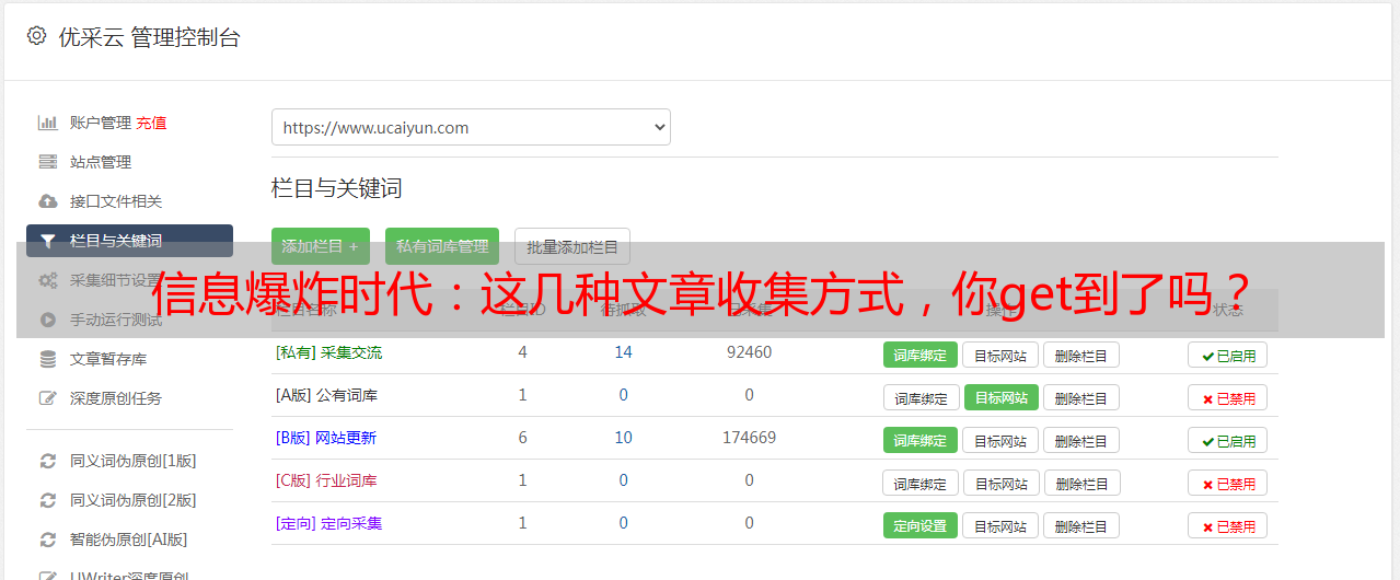 优采云 发布时间: 2023-12-31 21:27信息化新时代下,我们得以轻而易举地获取各类知识并分享传播。然而,面对海量的网络信息,怎样方便且高效地收集文章成为了一项迫切需要思考的难题。本篇文章以火车头的视角进行审视与比较,为您提供几类常用的文章收集途径。希望通过此分享,能助益广大读者朋友熟练掌握这一实用技能。