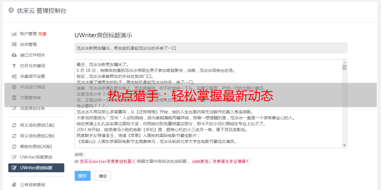 有关上述热点文章采集工具的使用体验分享完毕。希望能帮助您成为熟知资讯、掌握热门话题的达人。不妨一试哦!