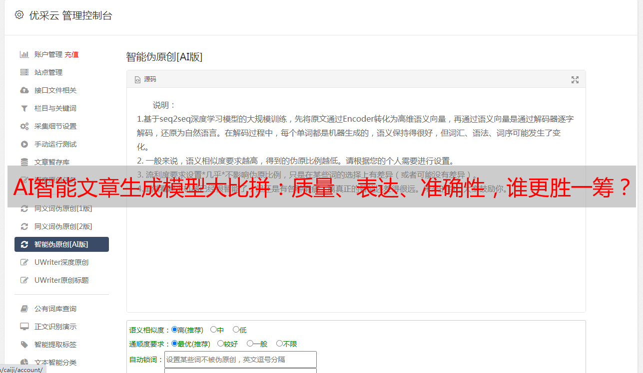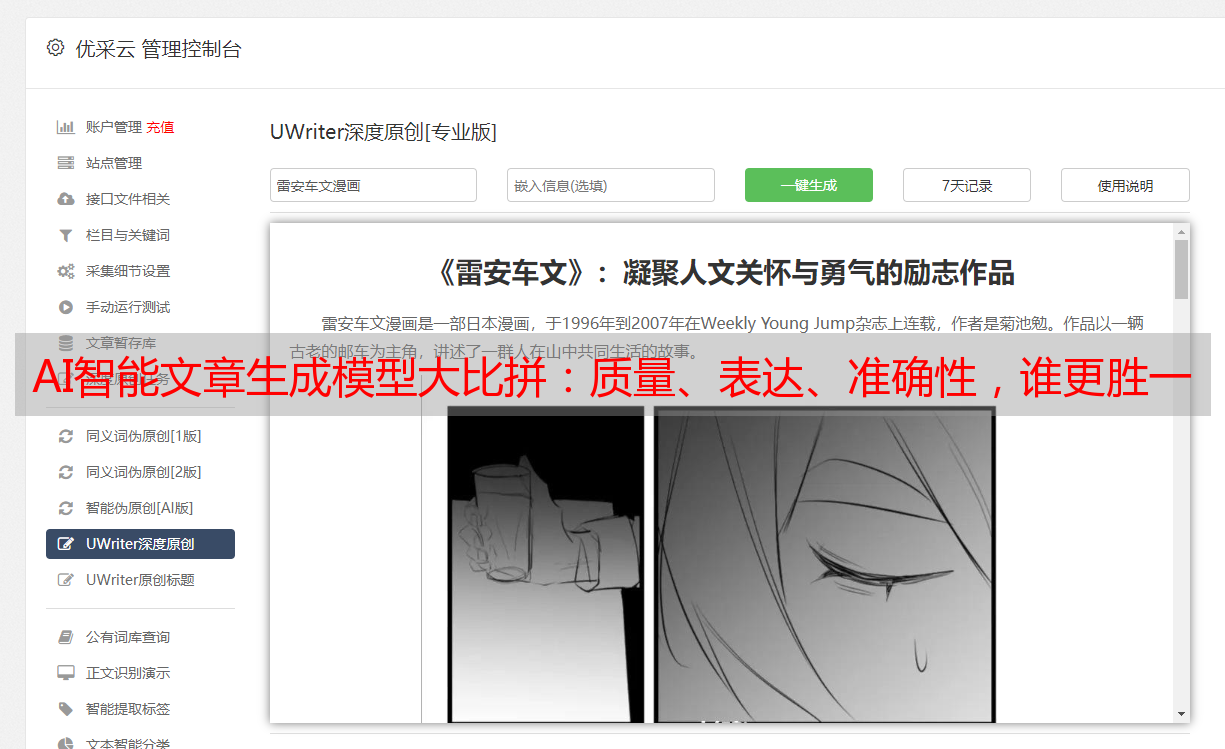 优采云 发布时间: 2024-01-01 15:53在此,我将以我个人的角度,对多种 AI 智慧创作模型进行比较与剖析,同时深层次地探讨其在文学质量、行文流畅度以及信息可靠性三个维度上的表现。