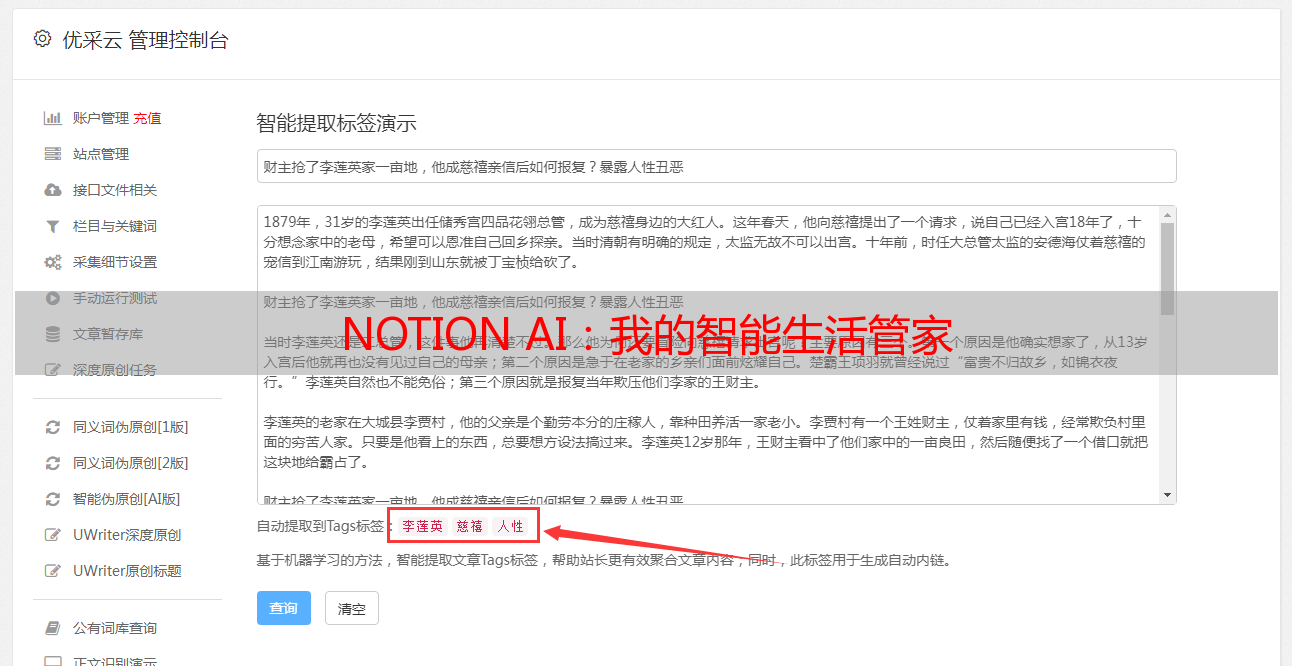 优采云 发布时间: 2024-01-04 17:55作为NOTION AI的使用者,我对其功能及便捷性的体验真是深感震撼。接下来,我想向您说说我所拥有的这份宝贵经历。