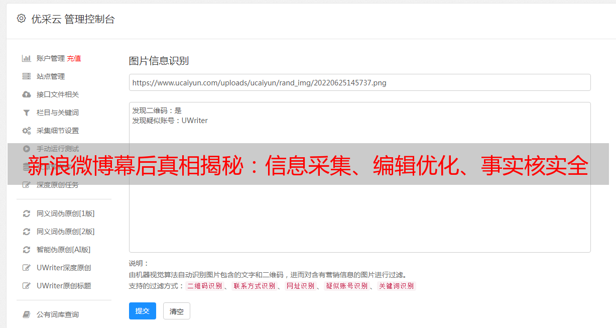优采云 发布时间: 2024-01-05 06:58新浪微博,有着数以亿计的活跃用户,是传递信息和分享观点的主要渠道之一。同时,也被各大新闻媒体视为重要的新闻来源。接下来,请跟随我们的视角,一起探索新浪微博文章采集的“幕后真相”。