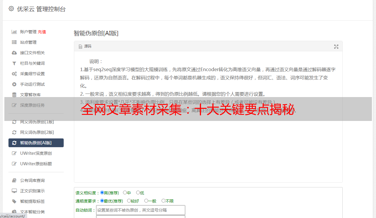 我们始终致力于全网文章素材采集的优化与改进。依据用户宝贵的反馈及需求,我们将持续精进,助您获取更优质、高效的服务。