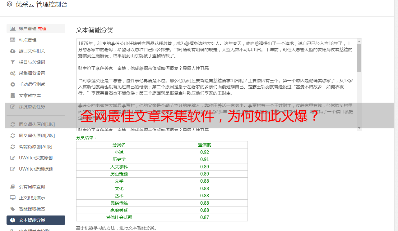 优采云 发布时间: 2024-01-06 19:47您好,我是您的文章采集软件小助手,今天我为您带来了一项主题深度解析——为何我能荣膺全网最佳文章采集软件之称?期待您的聆听!