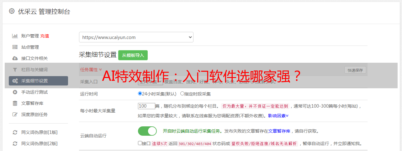 优采云 发布时间: 2024-01-07 01:58在这个数字化深入发展的时代,AI特效已然成为电影和电视艺术中的重要环节之一,因其能赋予画面更真实感及深度体验而广受好评。那么,对于广大观众所关心的“如何制作出色的AI特效”这一热门话题,以下内容将为您做详细解答。