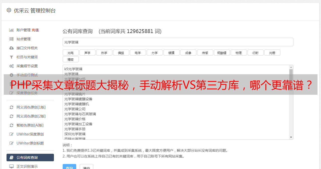 优采云 发布时间: 2024-01-09 05:31在此为您提供几款颇受欢迎的PHP采集文章标题实用工具及其使用技巧的深度分析,希望能助您在诸多选项中,挑选出最适合您的那一款。