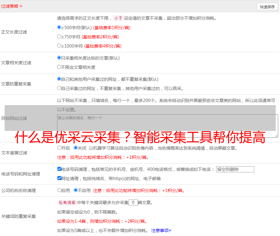 优采云采集支持根据标题、内容、时间、平台、是否原创等参数进行过滤,使搜索内容更加准确。
