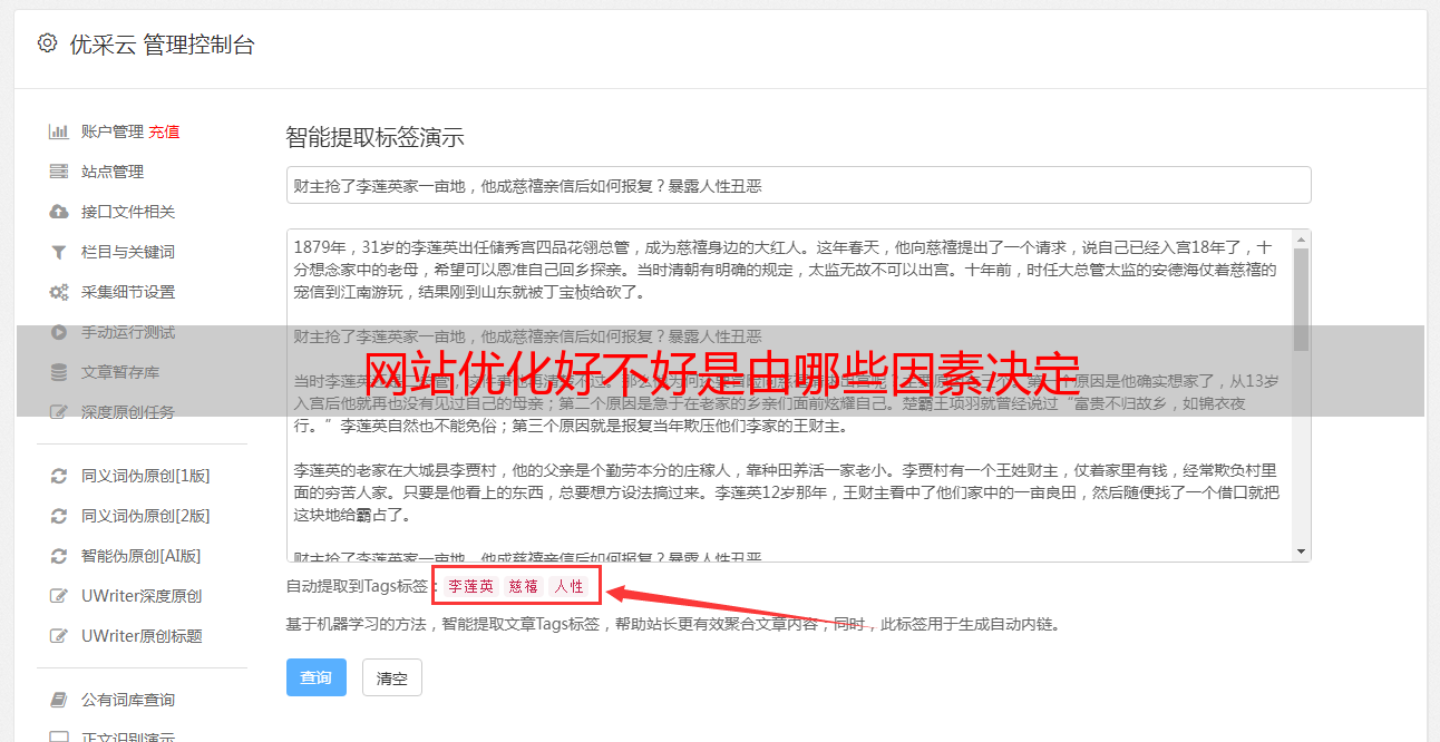 优采云 发布时间: 2021-06-21 18:56网站优化好不好是由哪些因素决定