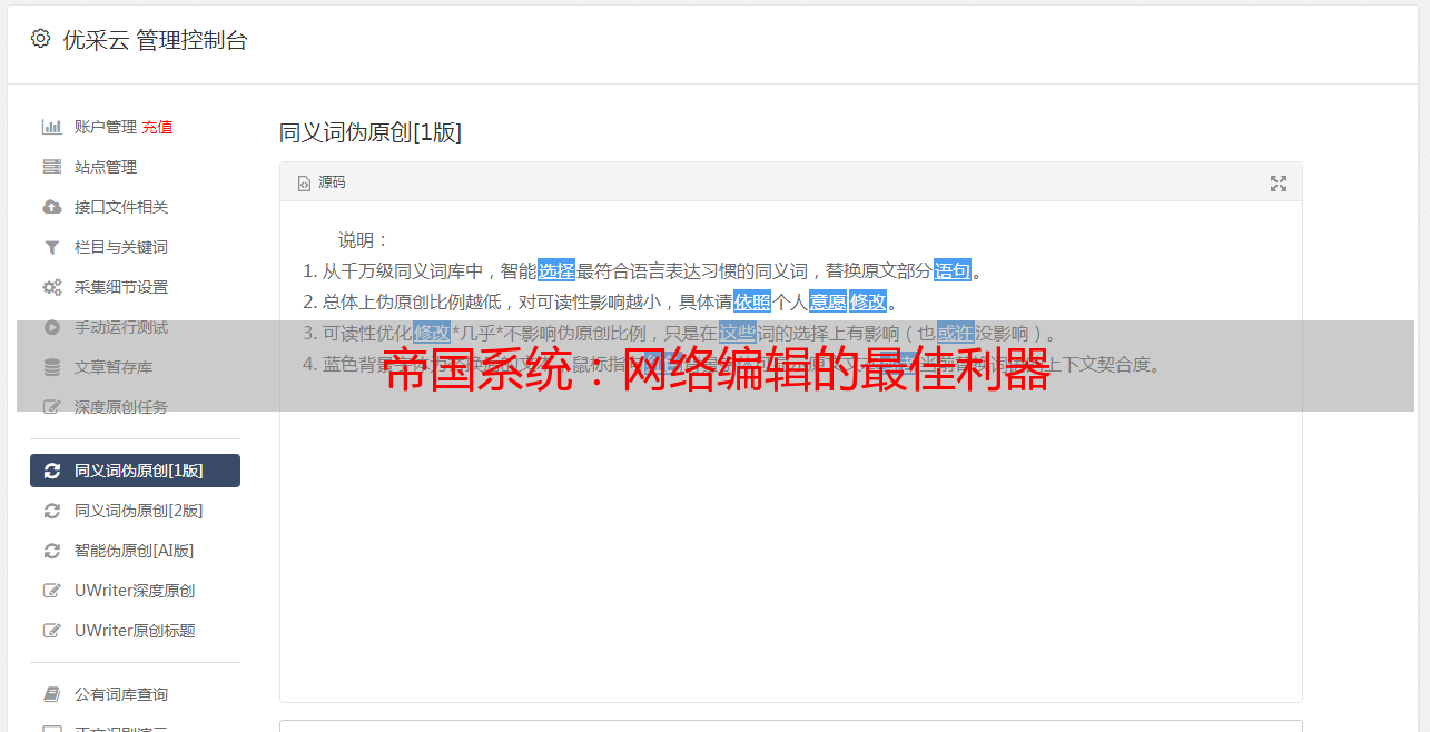 优采云 发布时间: 2024-01-13 04:31身为一位经验丰富的网络编辑,我经常得借助各式各样的资源来撰写文章。近期,我发现了一款极为适用的工具——帝国系统。该系统具备收集全网文章的功能,使我获取写作素材的效率大大提升。