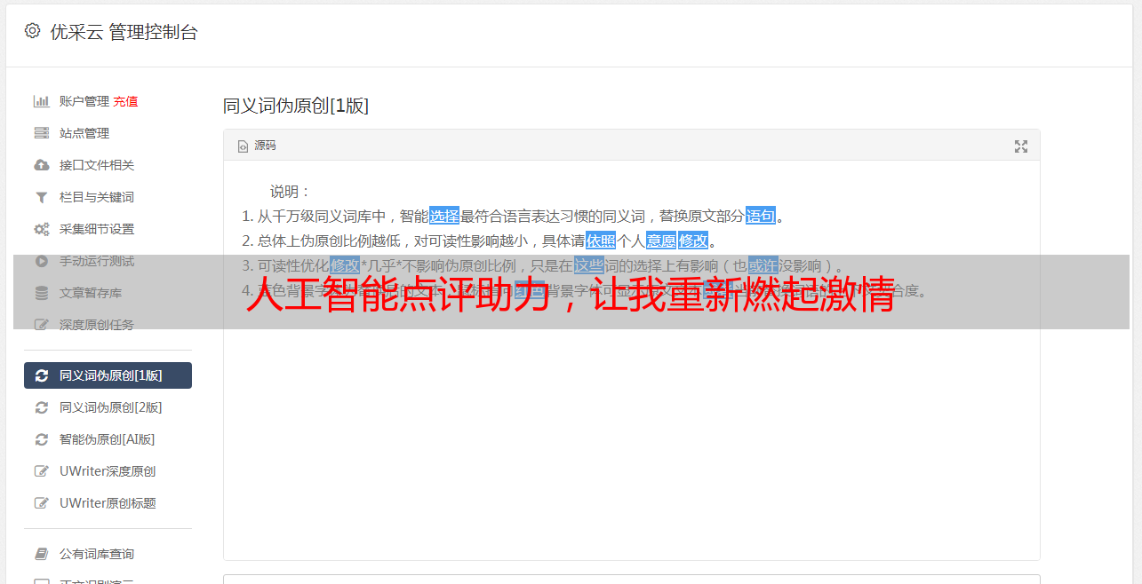 优采云 发布时间: 2024-01-15 06:28作为一位热爱点评工作的资深人士,每日繁重的点评任务使我略感疲惫。但近期,我开始使用人工智能自动生成点评内容,从而为这一富有挑战的工作带来了全新的视角与*敏*感*词*。