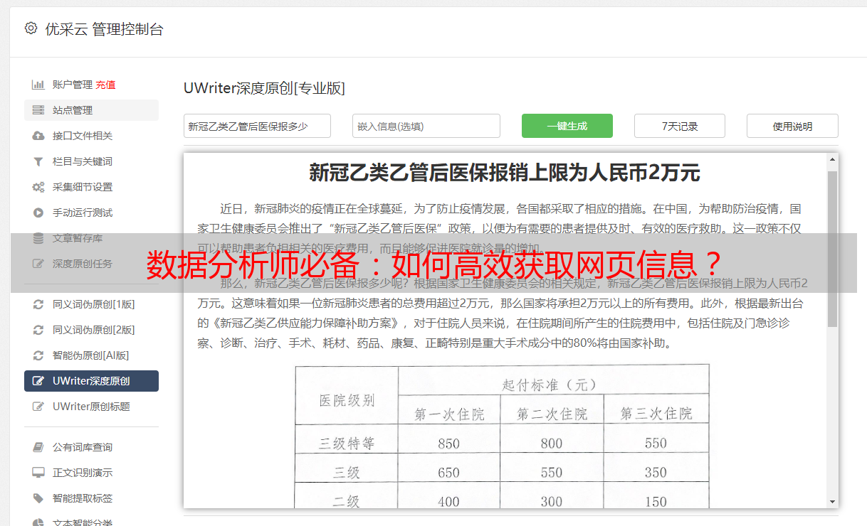 优采云 发布时间: 2024-01-15 15:58尊敬的各位,自动网页采集作为高效获取信息的关键技术,对于数据分析师尤其重要。在此,我身为经验丰富的数据分析师,愿与大伙分享一些有关此方面的心得体会。