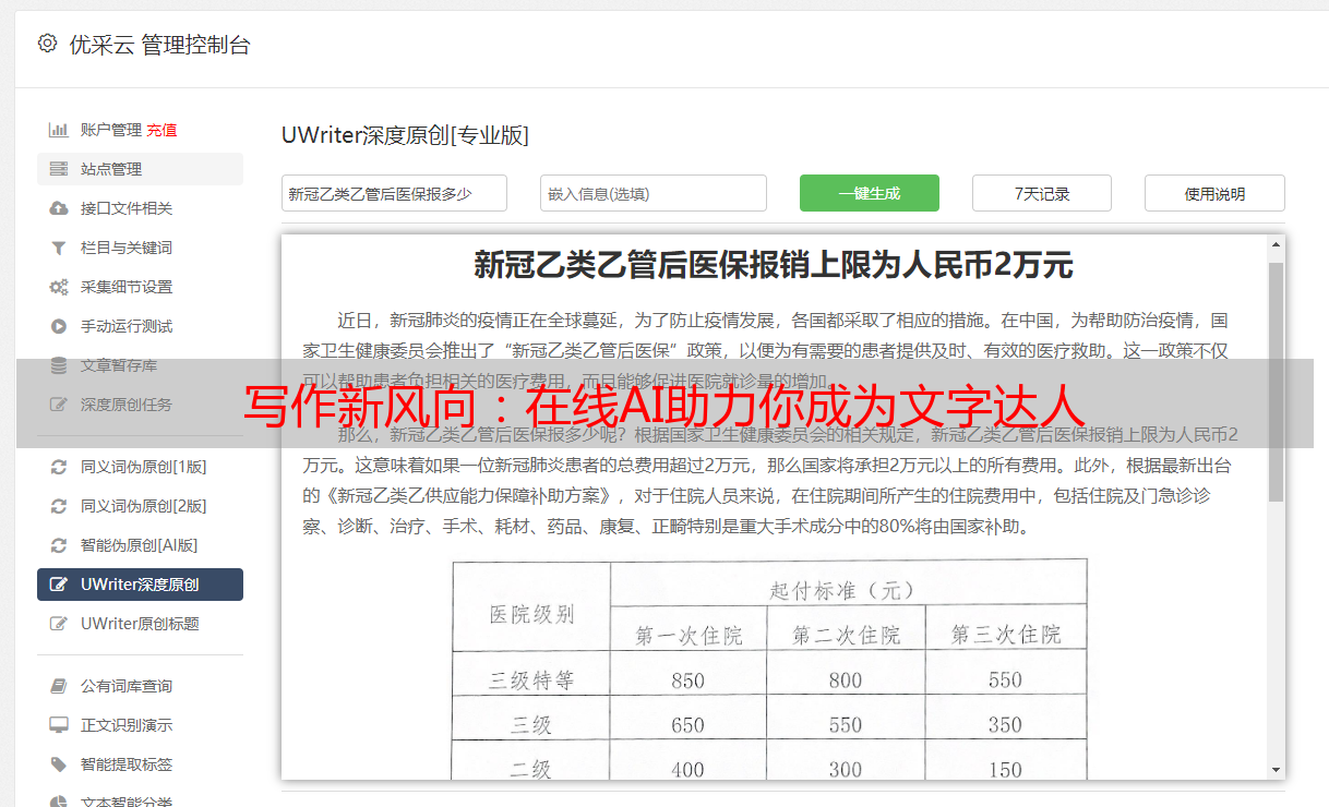 优采云 发布时间: 2024-01-16 12:16在信息化社会中,写作已如呼吸般重要,成为每个人必备技能之一。不论是商务场合的邮件撰写,亦或日常生活中的社交媒体分享,每个人都期望用富有魅力与美感的言语来呈现自我。遗憾的是,并非人人皆怀才又有暇精心锤炼,于是,线上AI论文生成服务恰逢其时地满足人们所需。