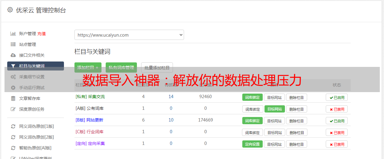 优采云 发布时间: 2024-01-16 13:54在此向大家推荐一种功能完备的数据导入神器——壹伴导入采集工具。这款产品能助您迅速且成功地上传多种格式的重要数据至系统之中。身为数据分析专业人士,曾使用过多款同类型产品,而今壹伴导入采集工具却是让我颇为钟情。接下来,我将从多维度为大家简要阐述这款产品的出色之处。