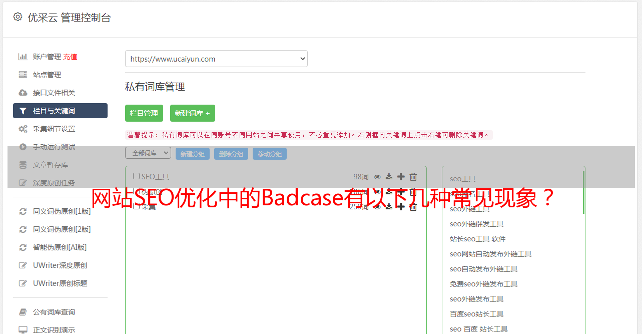 Badcase 翻译为坏情况的意思。大量不良案例记录后,搜索引擎会采集大量案例数据。如果下次遇到不合理的搜索结果,它会验证这些案例的特征。如果有相似之处就进行调整,当然这需要非常强大的搜索算法。