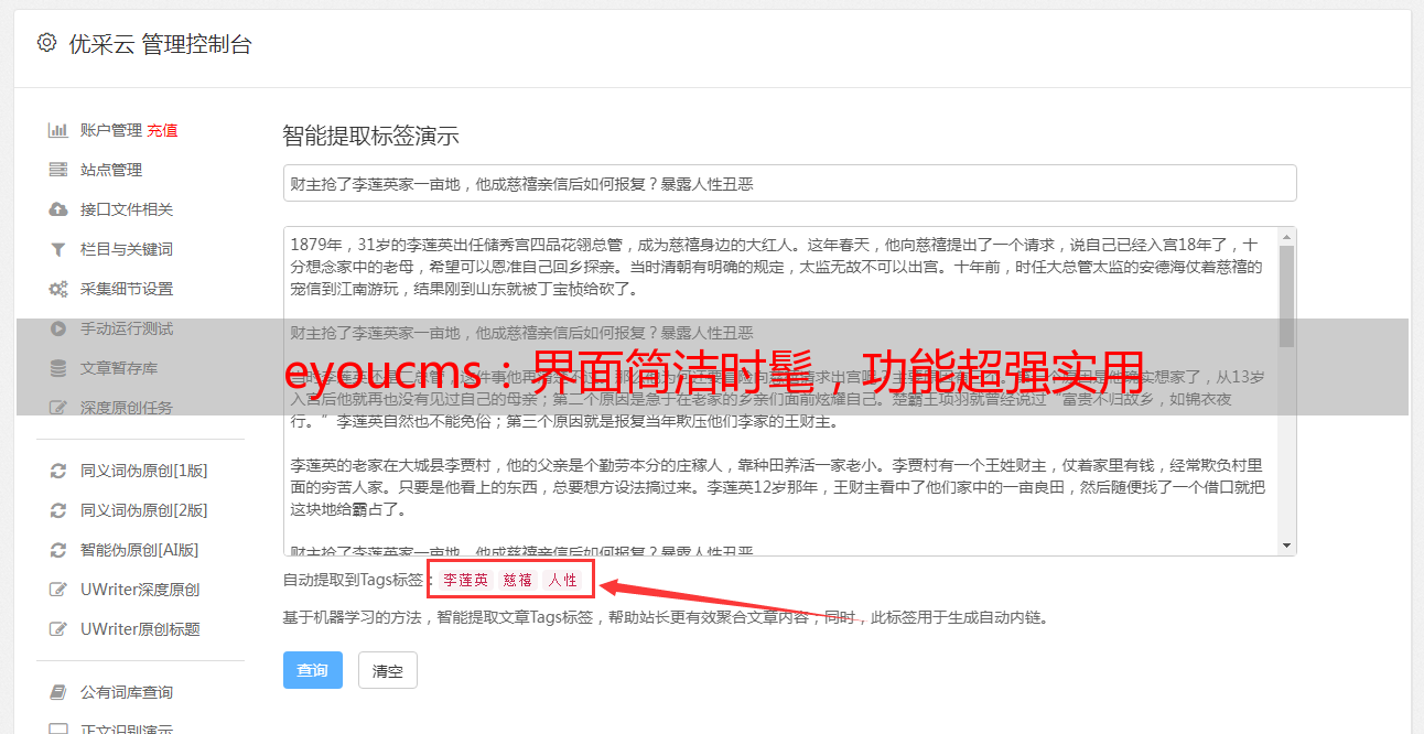 eyoucms具有出色的文章采集能力,可便捷地自动收集各大网站文章,且速度快精度高。
