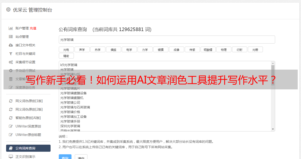 优采云 发布时间: 2024-01-21 03:51应用AI文章润色工具是一个创新途径,它能助力文章的完善和改进。我自体验该工具有前,也遇到过些许困扰,但随着学习和实践,我逐步形成了自己的心得,现在非常乐于分享给大家。