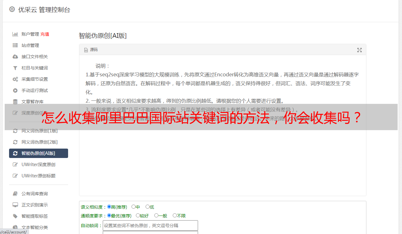 首先说明一下,无论你是刚接手阿里国际站运营的新手,还是店铺运营不好的外贸业务员,都适合使用。如果你对阿里国际站平台的后台功能有更深入的了解,其实关键词采集只需要三个地方即可。