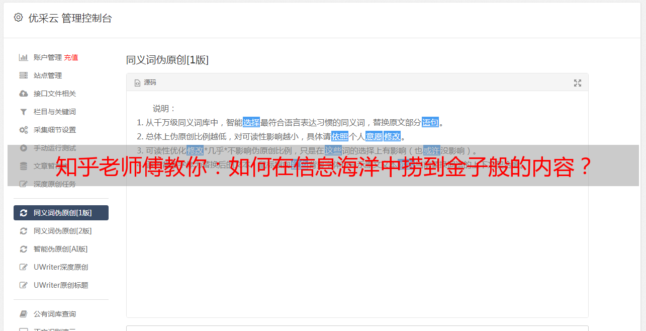 优采云 发布时间: 2024-01-21 10:39在如今资讯如潮水般涌来的社会中,每时每刻都能接收到海量信息。怎样从纷繁复杂的信息中筛选出精华并传递出去?这是一项至关重要且有待培养的本领。身为知乎的一位老师傅,今天特别抽出时间为大家讲解一些提高采编和撰写文章能力的诀窍,期待各位读者朋友们都能成为知乎平台上的优质作者。