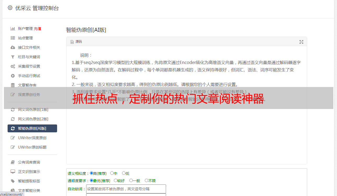 热点文章采集器设立了互动社区,让您得以与其他书友共享心得、经验哦!在这里,您可留言点评、阐述看法,与同样热衷阅读之人展开交流互动,发挥视野效应,获得丰富资讯。