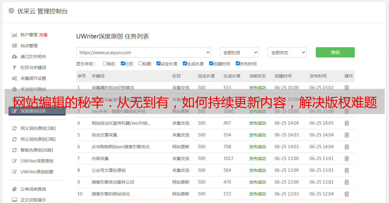优采云 发布时间: 2024-01-22 19:36身为一位敬业的网络编辑,我每日专注于网站的更新维护,致力于向广大读者传递最新的资讯和精彩内容。纵使我深感了解网站采集文章之苦乐,但在这个信息化的时代,这种方式已然成为保持网站活力的必要手段。