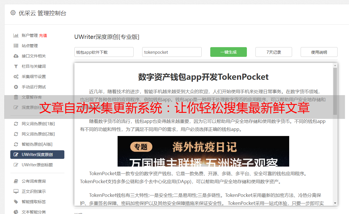 优采云 发布时间: 2024-01-23 04:271.什么是文章自动采集更新系统?